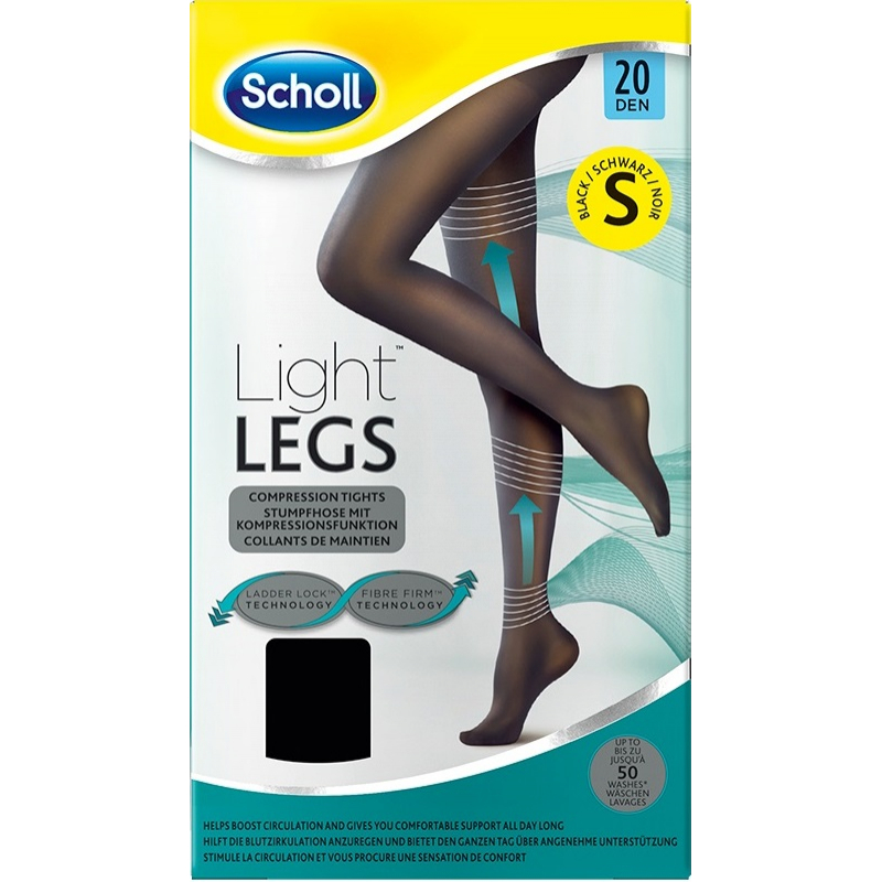 Kompresní punčochové kalhoty SCHOLL Light LEGS 20 DEN černé velikost "S" pomáhají zabraňovat pocitu únavy nohou a snižují pocit těžkých nohou.